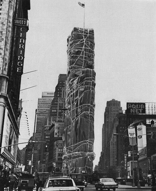 I noticed that while African women were carrying stuff on their head it was always wrapped. It made me think of Christo and Jeanne Claude who wraps everything hiding their original Function, like this or the reichtag. This is a huge metaphor to our personality, we hides ourselves under so many layers, so much uniforms, so much materials and objects. We hide our authenticity, our trueselves behinds uniforms. I also like the way the work is wrapped with the rope. In my first performance piece, you see everything under a big white sheet, as people are embarrassed to show what they carry as they don't like to reveal a piece of theirselves. I've done it myself when I carried my sculptures in the tube I decided to put a cloth on it as I was scared of the public judgement. Christo and Jeanne Claude are artists that through their wrapping have shown how we are intrigued by wrapped buildings/ objects which we would have otherwise probably overlooked