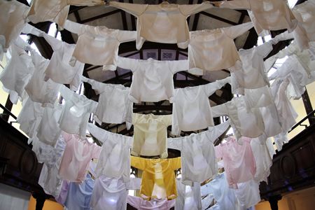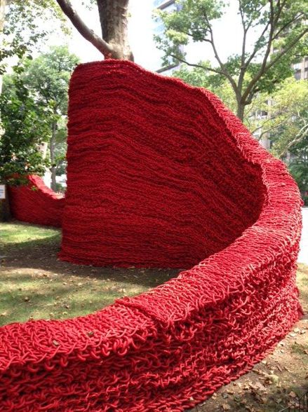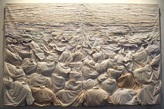The use of white t shirts to create a landscape is inspiring, I would like to stuff my jeans and white t shirts and stuff it in order to create a landscape. This is in a canvas as well.