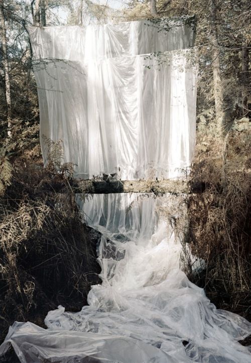 Christo used here fabric to create and endless wall dividing in two the land. As I find walls very interesting as they do both divide nations but also creates home, I like the idea of fabric as the materials to separate. Fabric weighs nothing, it is not impressive or blocking like a concrete wall would be. It illustrate the contradiction, it divides but yet the fabric allows you to go through or cut through very easily, Through my work I wantto show our very own walls, the ones we all create. The boundaries we make around our personality, I didn't want to talk about A wall I wanted to talk about OUR wall, one we can all identify to. Therefore using fabric is quite relevant as I think these walls are easily breakable, we can all go through them and knock them down.